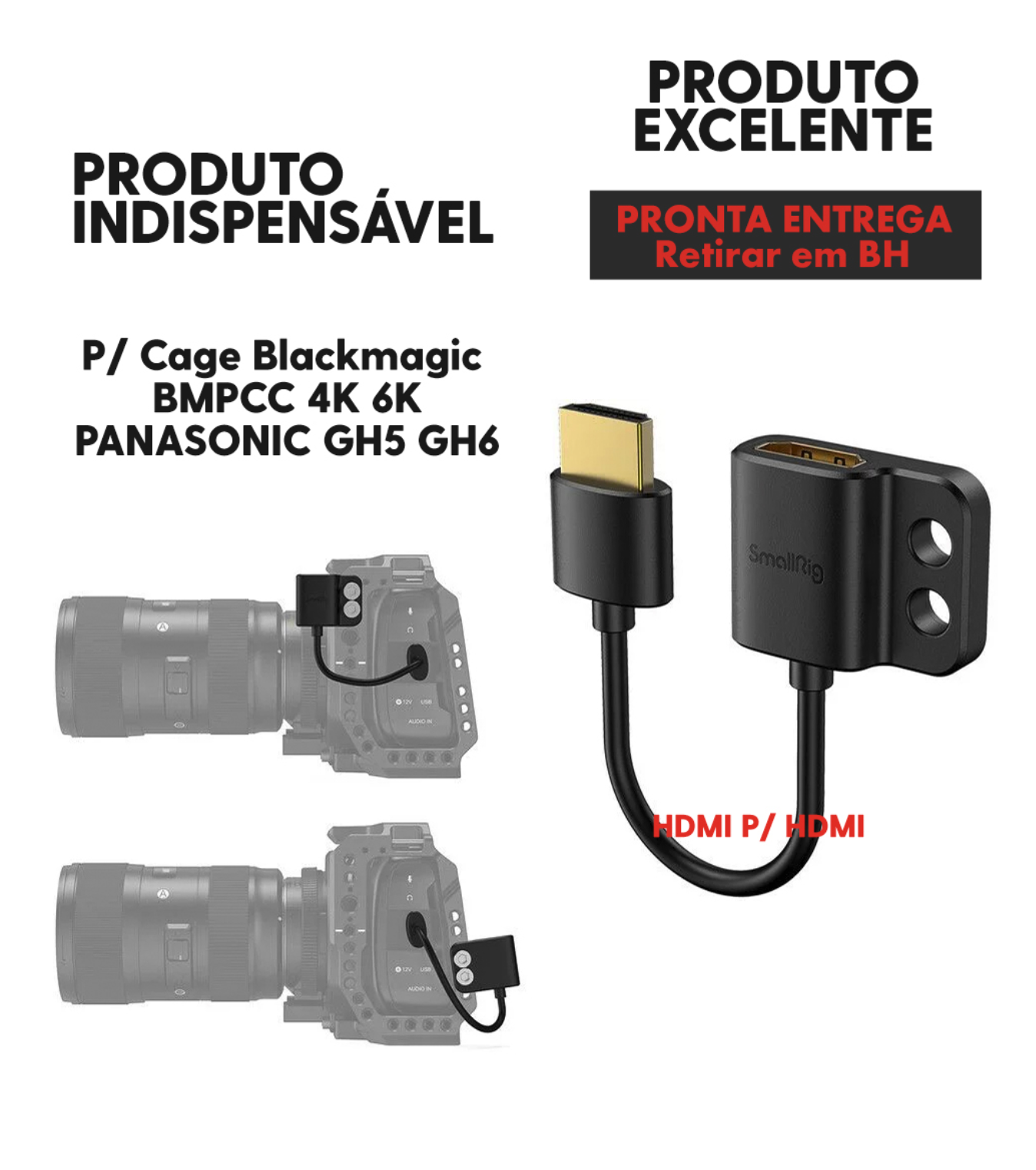 O Adaptador SmallRig – HDMI Fêmea para HDMI Macho – 3019 é perfeito para quem precisa de praticidade, flexibilidade e performance de conexão em setups de vídeo e áudio.