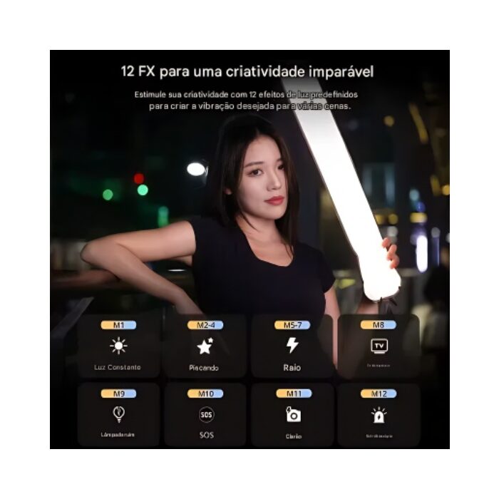 O Bastão de LED Balão Ulanzi é uma solução versátil para profissionais de fotografia e filmagem que buscam uma iluminação portátil, potente e criativa. Com 20W de potência e ajuste de temperatura de cor bicolor, ele permite transições suaves entre tons quentes e frios, garantindo maior controle sobre a iluminação da cena. Seu design compacto facilita o transporte e a instalação em diversos ambientes, tornando-se ideal para produções cinematográficas, vídeos publicitários e sessões fotográficas. A tecnologia LED de alta qualidade proporciona uma reprodução fiel das cores, assegurando um resultado profissional em qualquer situação. Além disso, o bastão conta com modos de efeito que possibilitam simular diferentes tipos de iluminação criativa, agregando dinamismo às produções. Com uma interface intuitiva e ajuste preciso de intensidade, ele se adapta facilmente às necessidades do usuário. O design ergonômico e leve permite o manuseio confortável, seja montado em tripés, suportes ou segurado manualmente. Equipado com bateria recarregável, oferece excelente autonomia para gravações prolongadas. Sua construção robusta garante durabilidade e resistência, sendo um equipamento essencial para qualquer produção audiovisual.
