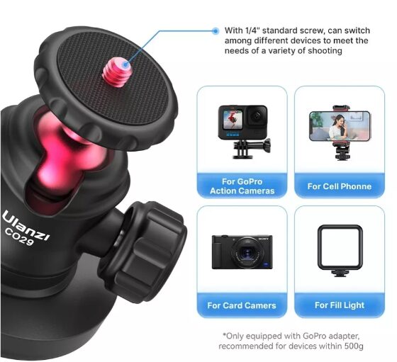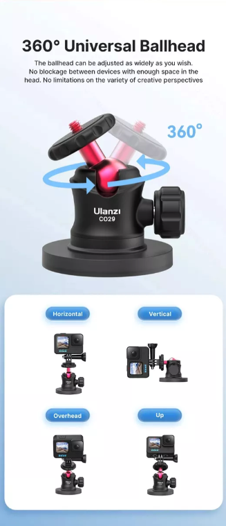 Ideal para gravações em movimento, transmissões ao vivo ou até mesmo para capturar imagens em ângulos inusitados, a Cabeça Magnética Ulanzi C029 é fácil de usar e altamente versátil. Ela é compatível com uma ampla gama de dispositivos, incluindo câmeras de ação, GoPro, smartphones e câmeras DSLR, tornando-a a escolha perfeita para cinegrafistas e entusiastas da fotografia.