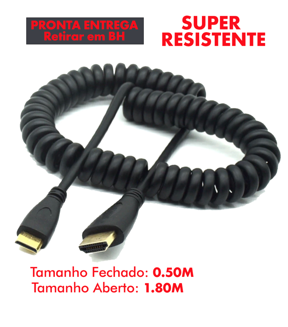 Seu design espiral proporciona agilidade no uso, permitindo que o cabo se ajuste conforme a necessidade, enquanto evita emaranhados. O Cabo Mini HDMI para HDMI oferece transmissão de sinal de alta qualidade, garantindo uma conexão estável e sem perdas em vídeos e imagens, ideal para quem trabalha com gravação de vídeos e apresentações.