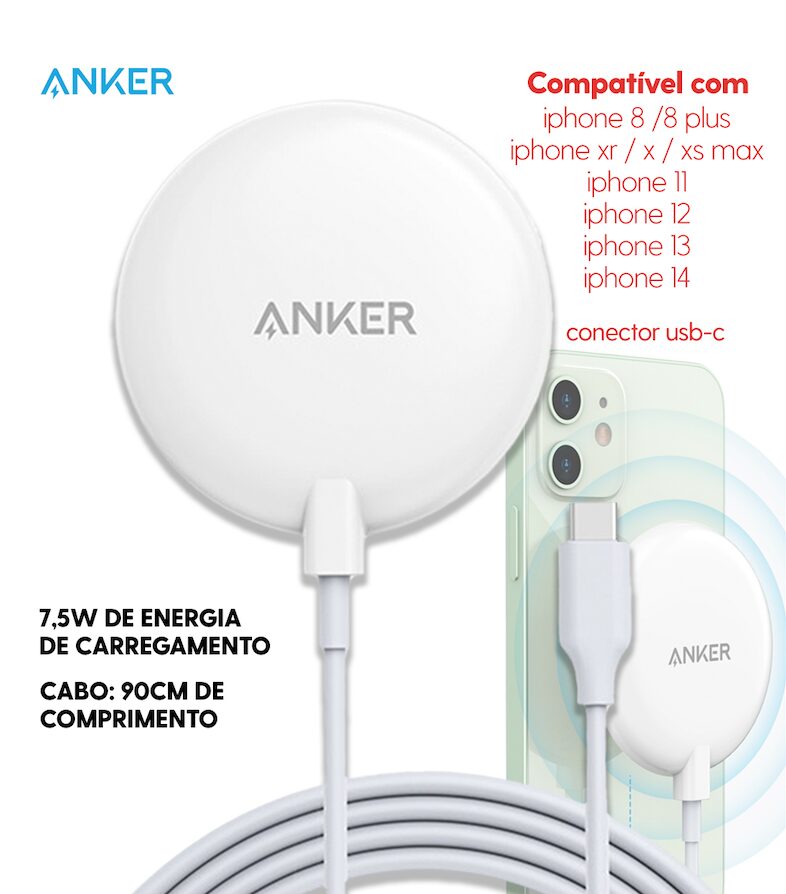 Com compatibilidade ampla para dispositivos que suportam carregamento sem fio, como smartphones e fones de ouvido, oferece uma solução versátil para manter vários aparelhos carregados de forma prática. O Carregador por Indução ANKER é perfeito para quem busca a combinação de desempenho e conveniência.