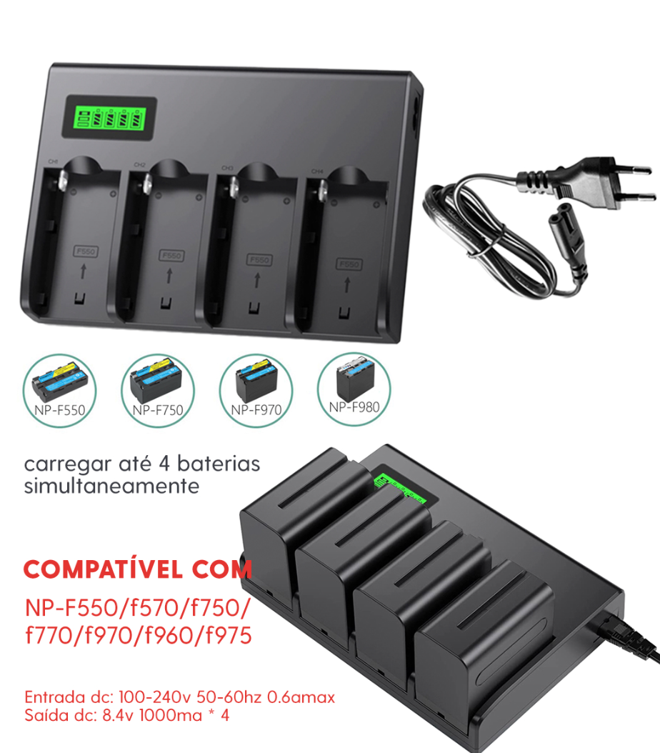 Com um design compacto e funcional, o Carregador Quadruplo Probty é ideal para quem busca praticidade e mobilidade durante suas filmagens. Além disso, ele possui indicadores LED que mostram o status de carga de cada bateria, garantindo que você sempre saiba quando elas estiverem completamente carregadas.
