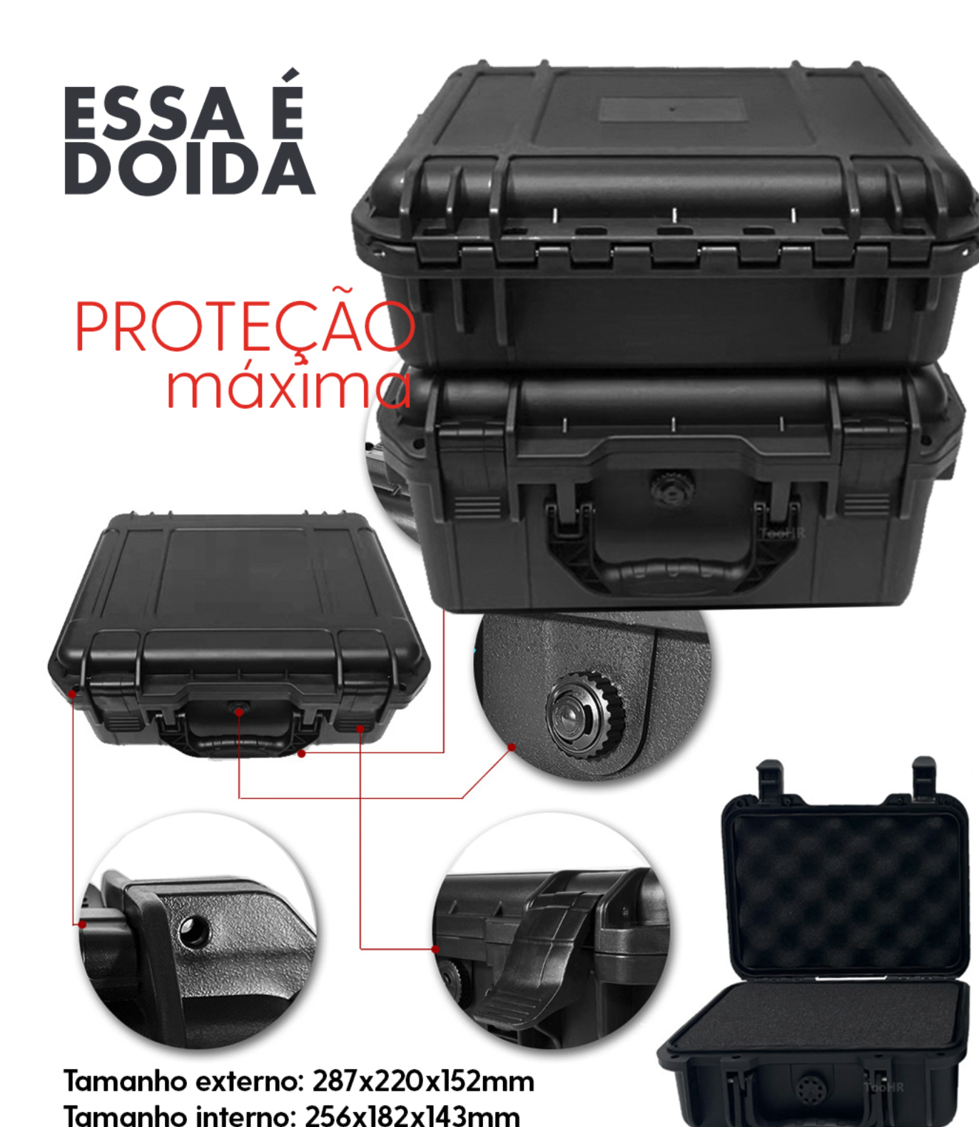 - Design: Compacto e seguro, ideal para o transporte de equipamentos sensíveis