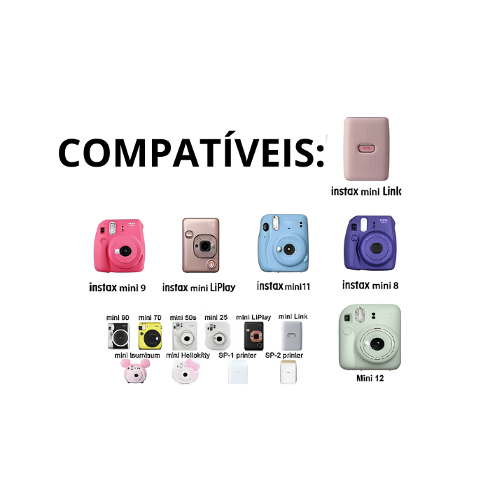 - Compatibilidade: Funciona com câmeras Instax Mini (como Instax Mini 8, 9, 11, 70, 90, SQ1, etc.)