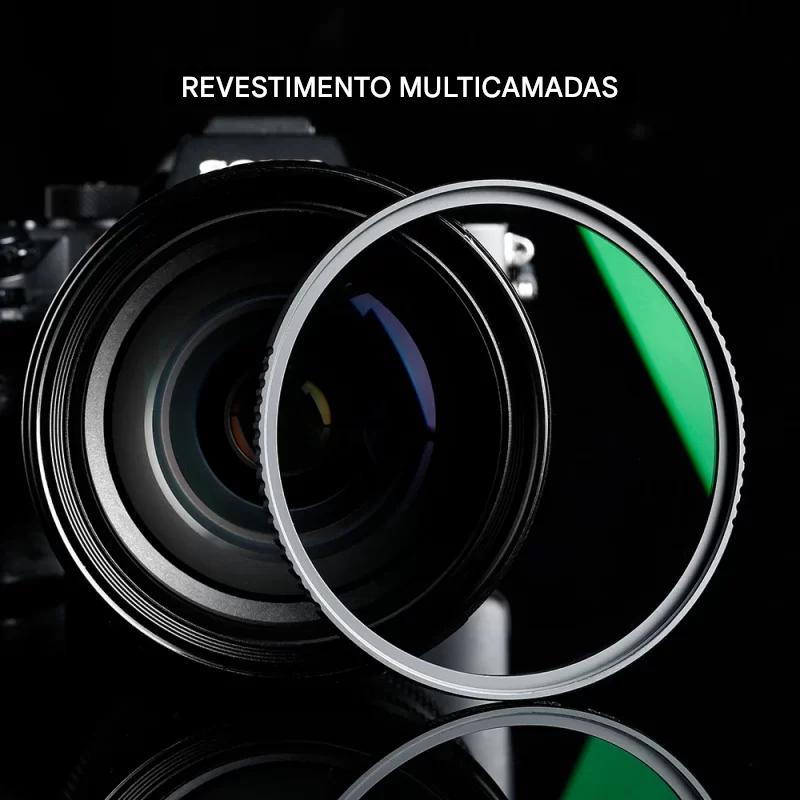Com tecnologia HMC (High Multi-Coated), o filtro oferece uma proteção adicional contra reflexos e distorções de luz, melhorando a qualidade da imagem. O revestimento multicapas reduz o brilho, aumentando a clareza e a precisão das cores, enquanto minimiza a perda de contraste. Esse filtro é ideal para ambientes externos, onde as condições de iluminação podem variar e afetar o desempenho da lente.
