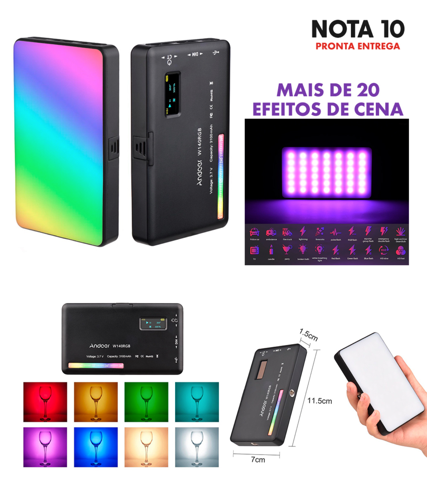 Com todas essas características, o LED RGB Andoer W140 é uma excelente escolha para quem busca versatilidade, qualidade e praticidade na iluminação de seus projetos audiovisuais.
