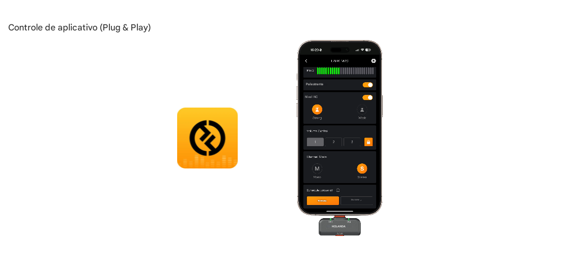 O microfone utiliza tecnologia de modulação FHSS (Frequency Hopping Spread Spectrum), o que ajuda a evitar interferências e a garantir uma transmissão de áudio limpa e sem ruídos, mesmo em ambientes com muitos sinais sem fio. - Controle de Volume no Receptor: