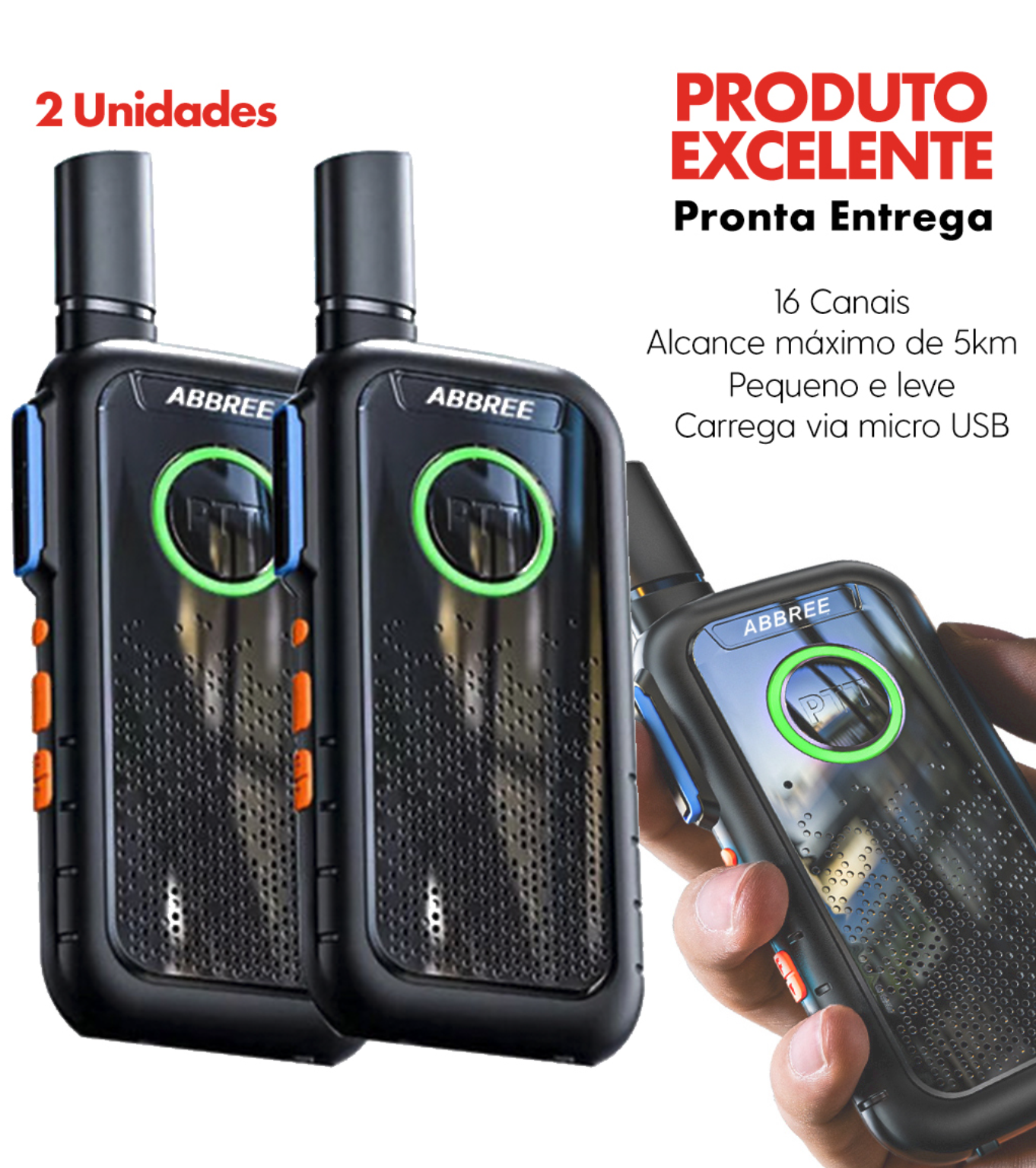 - Tipo: Mini Rádio de Comunicação Abbree-M3 (Par)