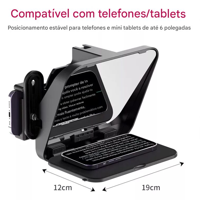 Este modelo é especialmente útil para vloggers, criadores de conteúdo, jornalistas e profissionais que precisam de um equipamento versátil para gravações em diferentes ambientes. O design portátil e leve facilita o transporte e a instalação, permitindo que você grave em qualquer lugar sem complicações. Além disso, o material refletivo de alta qualidade garante que as palavras sejam visíveis de forma clara, sem perder a qualidade de imagem da sua gravação.
