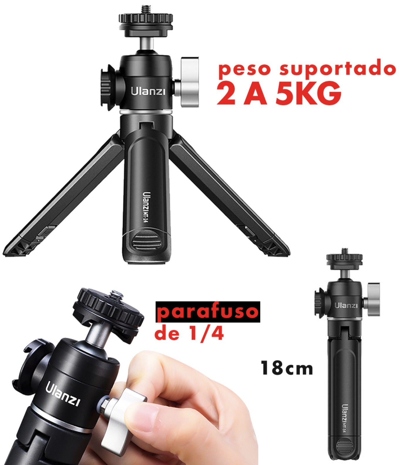 Além disso, o Ulanzi MT-14 é ideal para quem busca um equipamento multiuso, podendo ser usado tanto como tripé para câmeras e celulares quanto como suporte de iluminação ou microfone. Seu acabamento de alta qualidade assegura durabilidade e resistência, tornando-o um acessório confiável em diversas situações de gravação e fotografia.