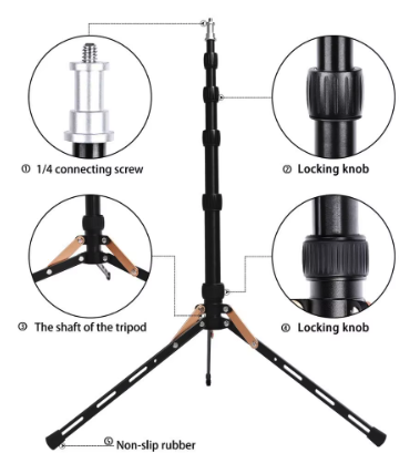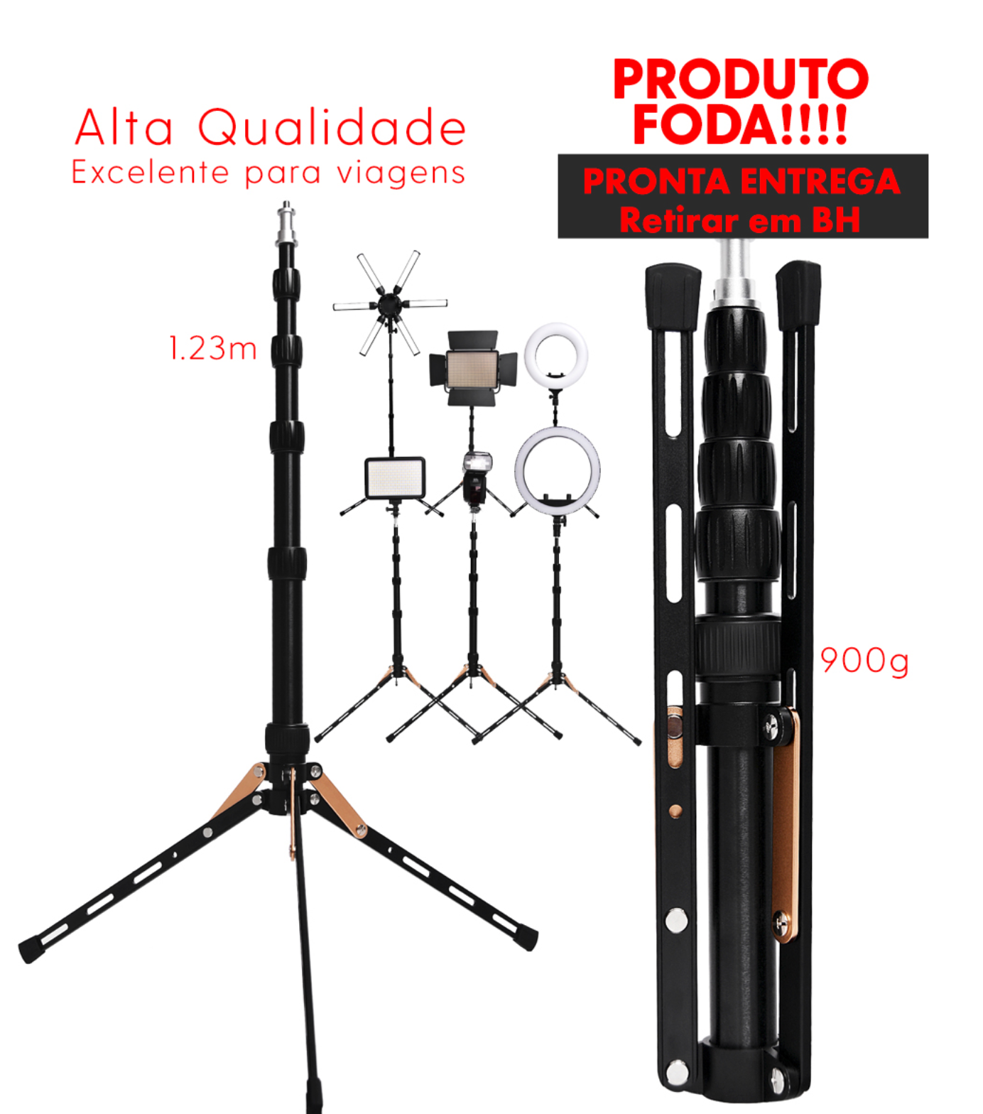 O design compacto e dobrável facilita o transporte, tornando-o perfeito para viagens, vlogs, transmissões ao vivo, videoconferências e capturas profissionais. Além disso, seu sistema de bloqueio rápido das pernas garante montagem e desmontagem ágil, otimizando o tempo de setup.